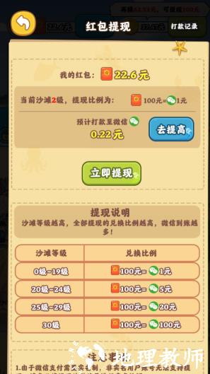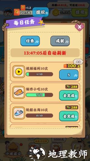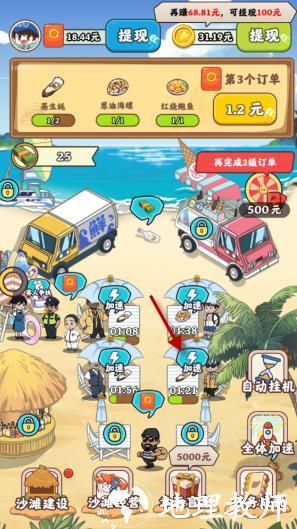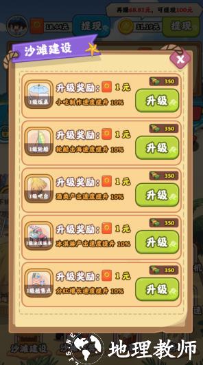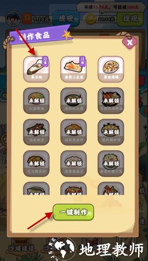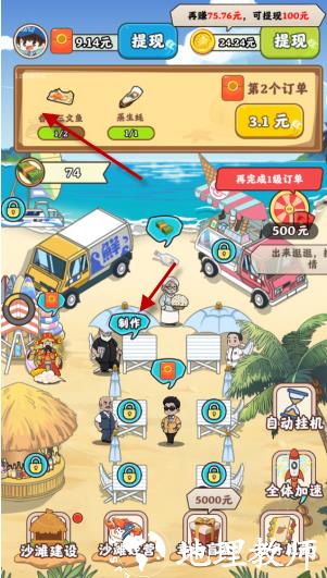 1、是一款以海边风情为主题的经营游戏,核心玩法是制作各类海鲜美食以完成订单,完成后可获得可观的红包奖励,整体玩法轻松休闲,无过多操作压力。