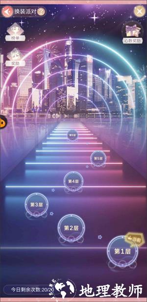 4、派对为时装比拼类型,根据每个关卡的要求穿戴相应类型额服饰即可增加分数,分数超过通关条件时即可通过,超出分数越多通关星级越高,最多3星。