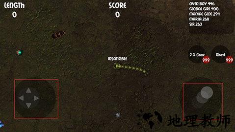 8、通过虚拟键盘控制移动方向,虫子慢慢扭动的身体看上去十分搞笑。