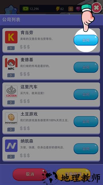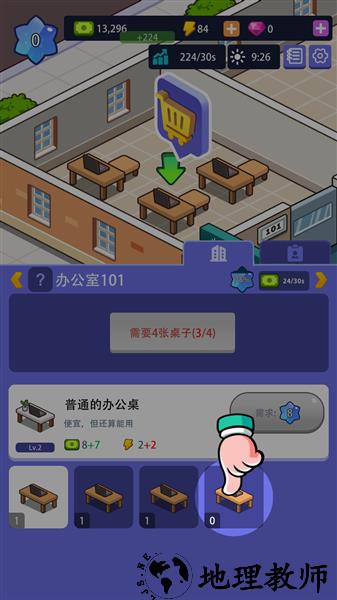 3、满足办公设施需要后可以与企业签约并增加声望,声望可以解锁更高级的设施。