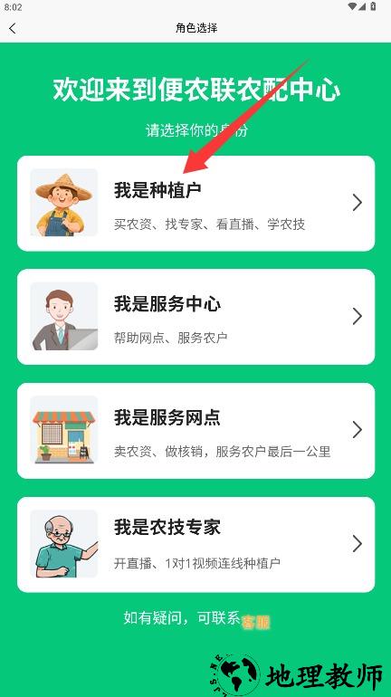 3、根据实际身份选择种植户或农技专家等角色类型,进入对应的详细注册流程步骤。