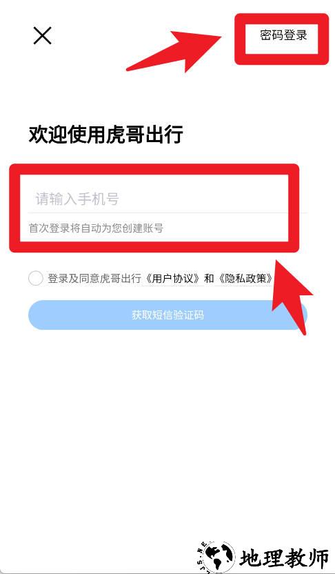 1、在登录界面,用户需要输入手机号进行注册或登录,也可以选择密码登录方式,首次登录会自动创建账户。