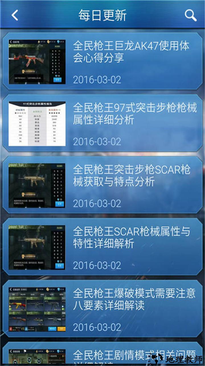 模块内容。攻略内容丰富,多种实用PK技巧与你分享,让玩家可以掌握好全民枪王游戏中许多细节,成为真正的枪王。