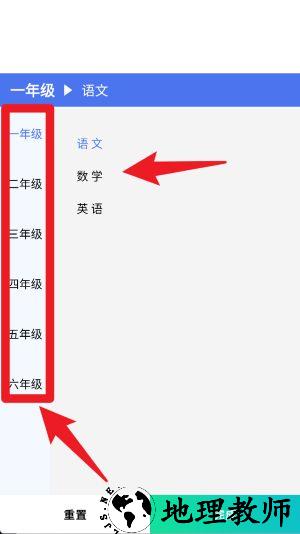2、选择对应的年级与学科后即可筛选所需教学内容,支持从一年级到六年级的科目分类查找。