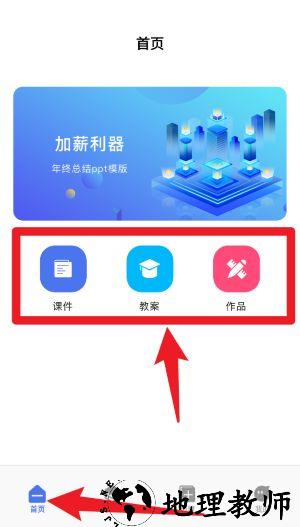 1、在首页中可快速进入课件、教案、作品模块,方便用户分类浏览与查找教育类PPT资源。