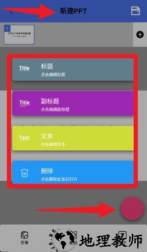 4、点击创建可新建PPT文件,自由编辑标题、副标题和文本内容,并支持添加图标与背景。
