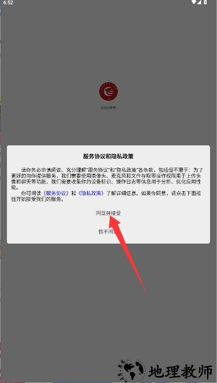 1、初次使用需阅读用户协议与隐私政策,确认无误后点击同意并接受按钮进入。