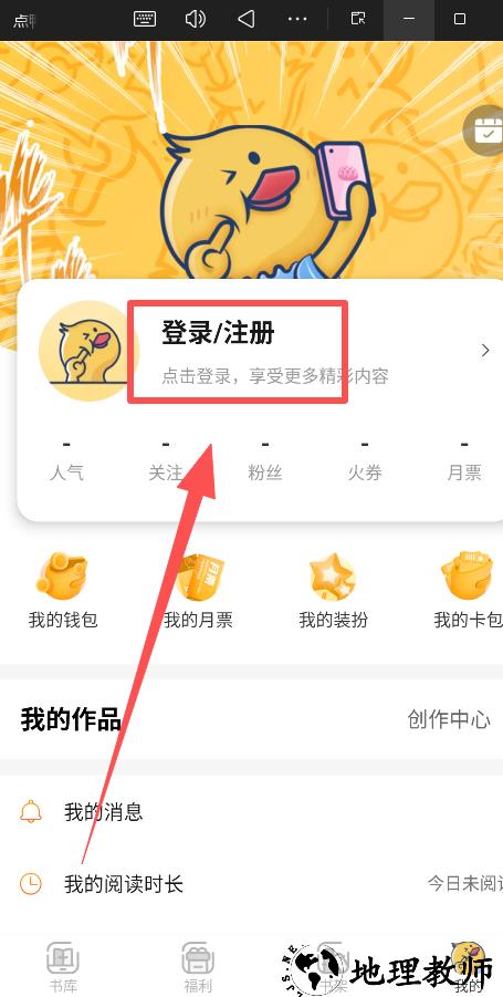 打开App后,首要步骤就是点击 “我的” 或 “书架” 完成登录。这是使用书架和同步数据的基础。