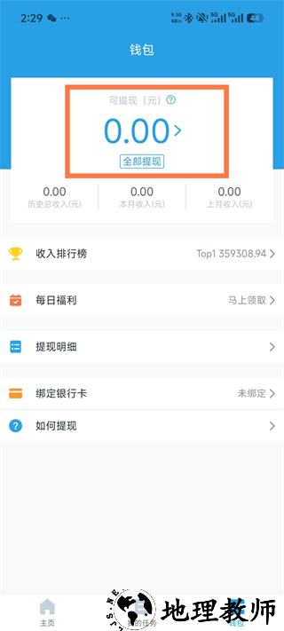 4、任务提交完成后等待打款,可在【我的钱包】板块查看收益,进而进行提现操作。