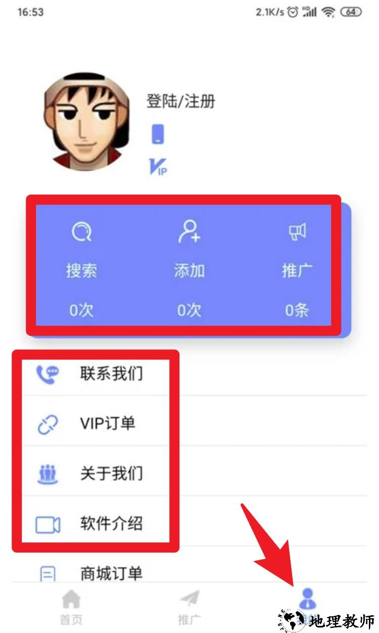 5.切换至底部我的页签,可以查看当前账户信息,查看VIP订单、联系客服、查看软件介绍等相关服务。