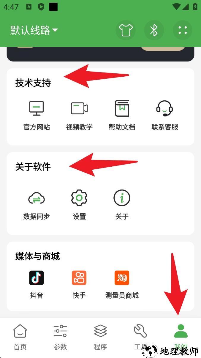 5. 在我的页面可找到技术支持入口,如官网、视频教学、帮助文档等,同时支持同步数据和查看软件信息。