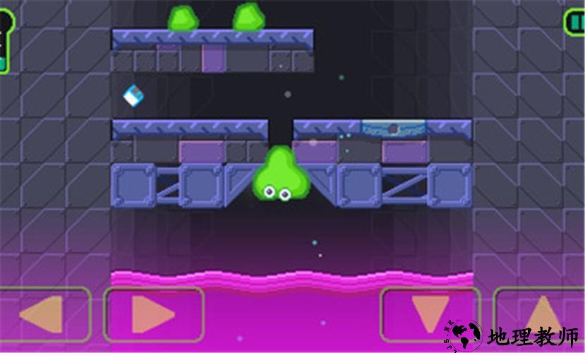 2、按照屏幕上方的上下左右键位来在场景之中冒险,注意躲开危险的化学池,别融化了角色。