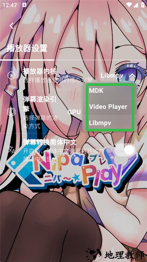 4、用户可根据自身需求,在MDK、Video player、Libmpv三种播放器内核中自由切换。