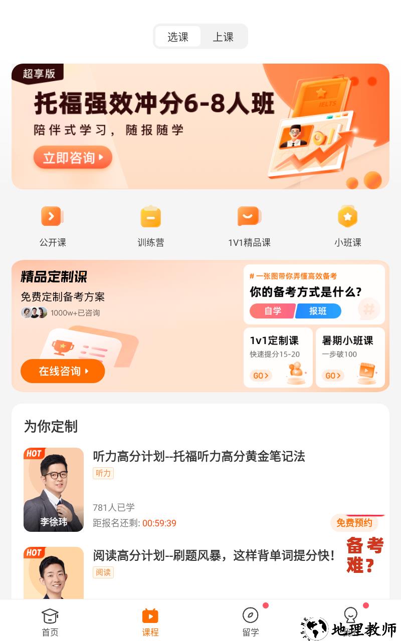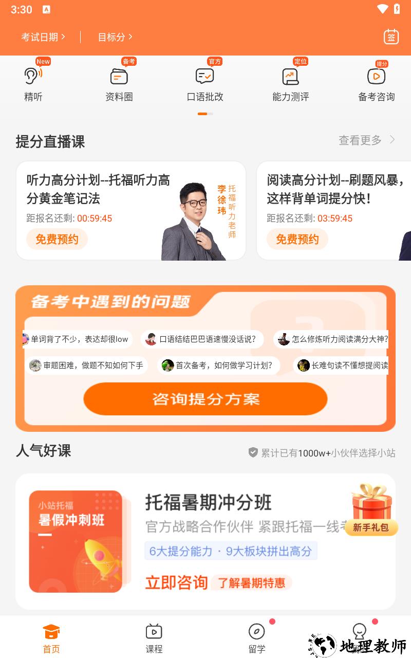 2、课程干货十足:针对短时提分需求,每天公开课可轻松预约,涵盖各科托福提分课,助力高效冲刺高分。