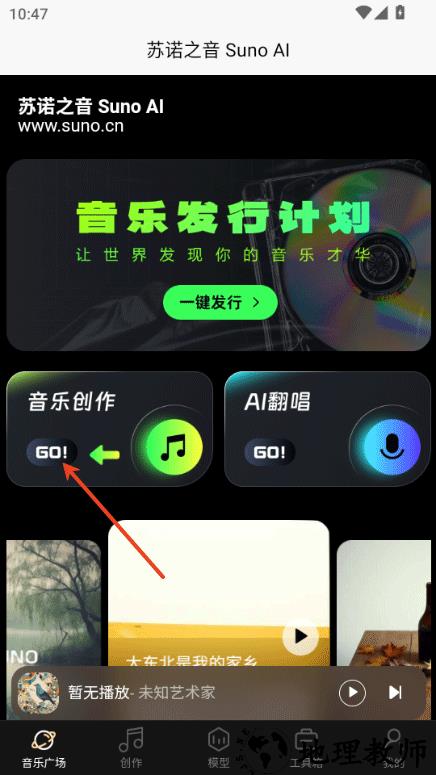 1、运行苏诺之音APP,进入后选择“音乐创作”模块。