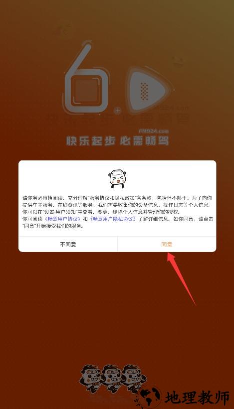 1、初次使用需完整阅读平台服务条款与隐私政策,确认后点击同意按钮进入应用。