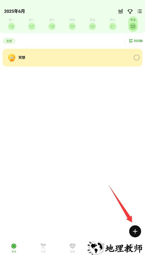 2、进入主界面后点击右下角的+按钮,即可开始编辑当日待办事项和计划安排。