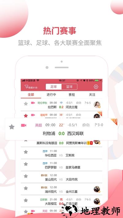 1. 实时比分和文字直播,比电视直播、网络直播更快30秒,提供即时赛事动态。