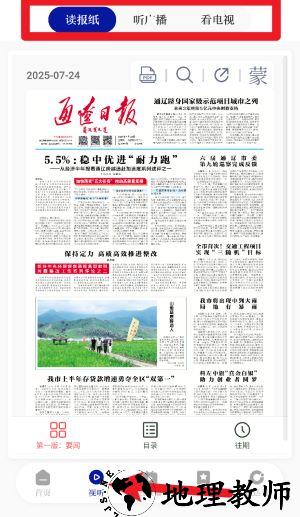 2、进入视听板块后,点击读报纸可查看通辽日报当期内容,支持缩放及查看往期报纸。
