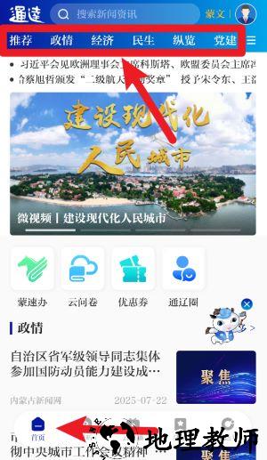 1、点击顶部导航中的推荐、政情、经济等栏目标签,可快速切换查看不同类型新闻内容。