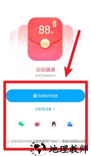 1、打开百度网盘后,用户可选择百度账号、手机号或第三方平台完成登录操作。