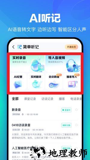 4、在听记页面中支持AI实时录音、导入音频转写、会议纪要整理等功能,帮助用户高效记录信息。