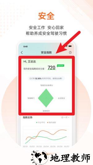 4、安全指数功能可实时评估驾驶行为得分,通过图表分析帮助司机养成良好的安全驾驶习惯。