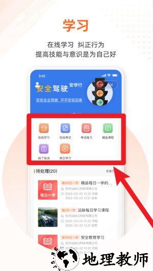 3、进入学习模块后可使用在线学习、考试练习与精品课程等功能,全面提升驾驶专业素养。