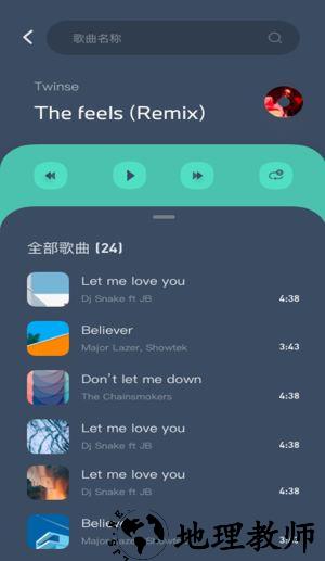 3、进入音乐播放界面后,可通过播放控制按钮切换歌曲、暂停播放,并浏览当前播放列表中所有音轨内容。