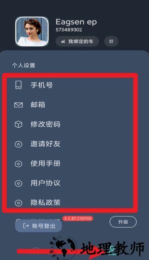 4、点击底部个人图标可进入个人设置页面,在此可绑定手机号、修改密码、邀请好友以及查看使用协议等内容。