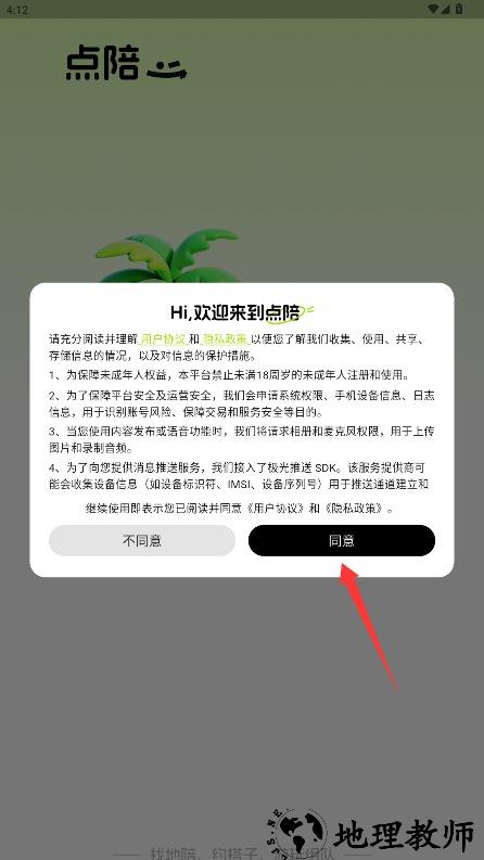 1、初次使用需阅读平台服务条款与隐私政策,确认后点击同意按钮进入应用。