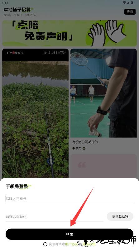 2、在登录界面输入手机号码和验证码,勾选同意相关条款后点击登录按钮进入应用。