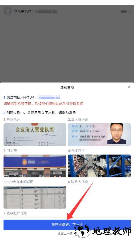 3、仔细阅读入驻须知,按要求准备身份证件、营业证照、店铺实景图等必备材料后继续。