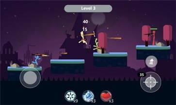 1、游戏采用横板冒险的玩法制作而来,可以自由的选自己喜欢的火柴人角色进行挑战。