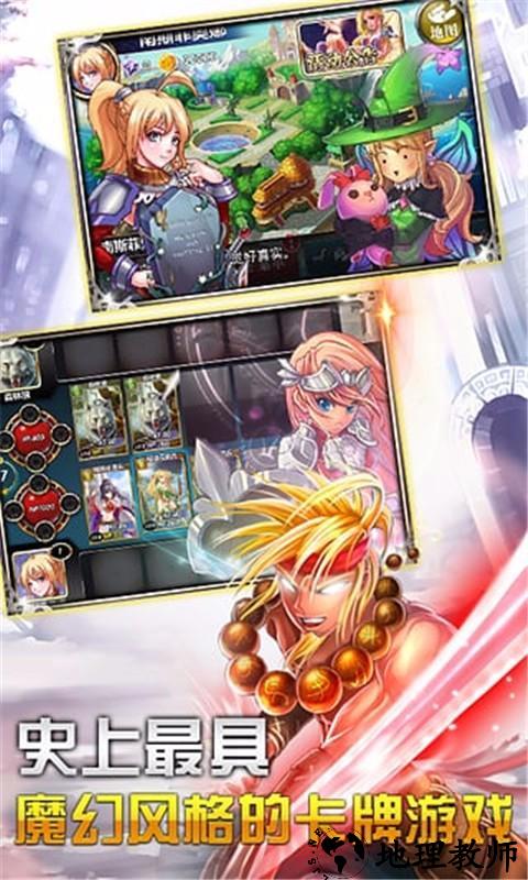 走华丽风格的《魔法禁书》,其高品质的画质造就了上百张精美绝伦的卡牌,配以战斗时华丽眩目的技能效果,让你在游戏时享受一场视觉大宴;卡牌角色或清新可爱或华丽妖冶或气势如虹,每张都有独特的获取方法,让你战斗之余体味一步步收集卡牌之趣。
