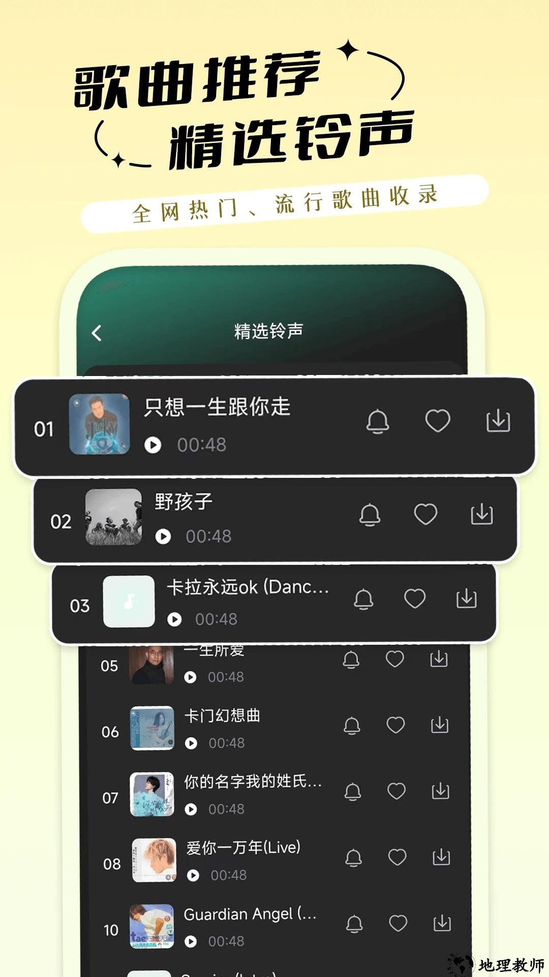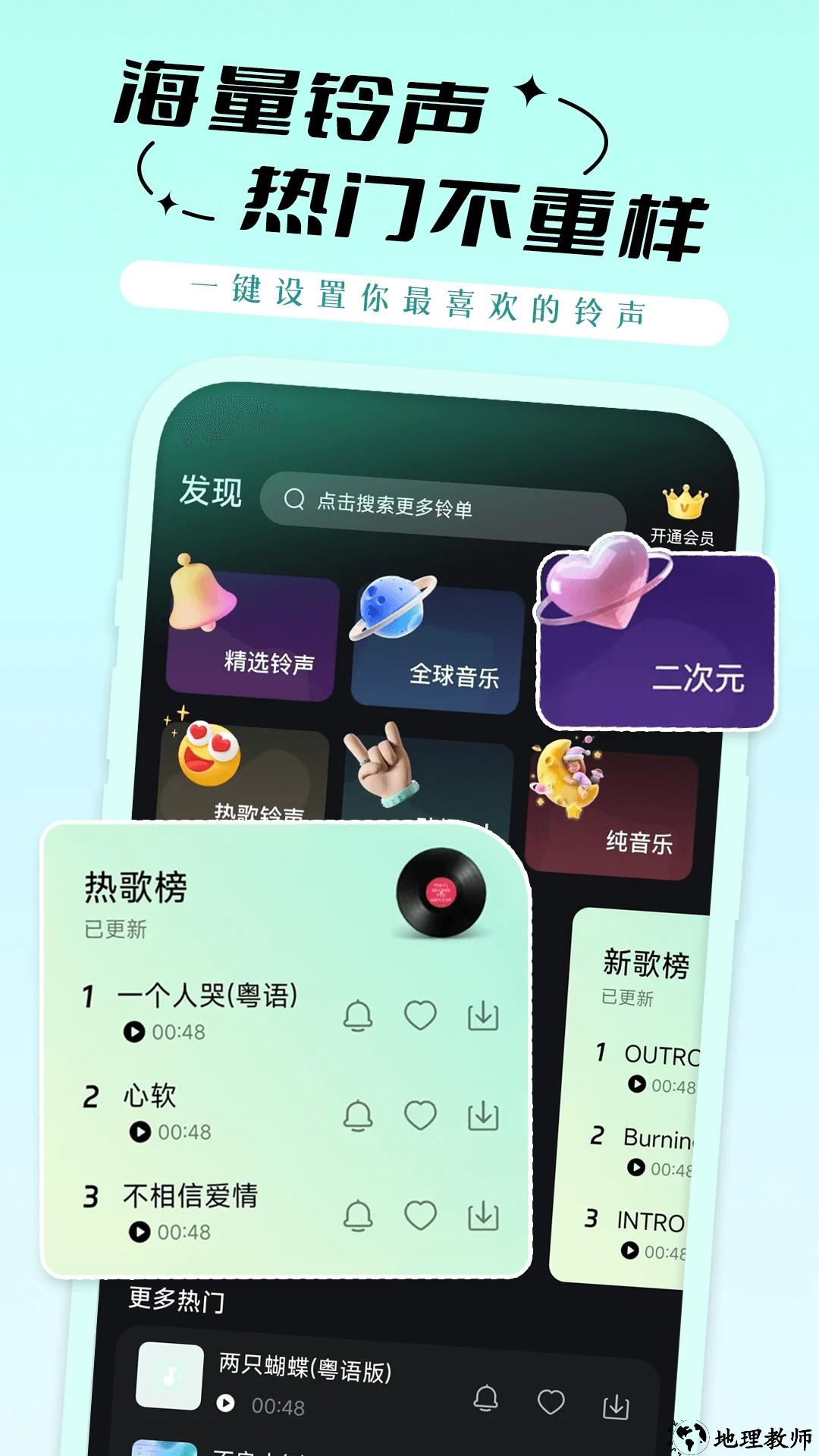 1. 百万级正版曲库:与网易云音乐、酷狗音乐等主流平台合作,提供超过500万首正版铃声资源,涵盖华语、欧美、日韩、纯音乐等全品类,每日新增热门曲目超千首,确保用户始终能获取最新潮流铃声。