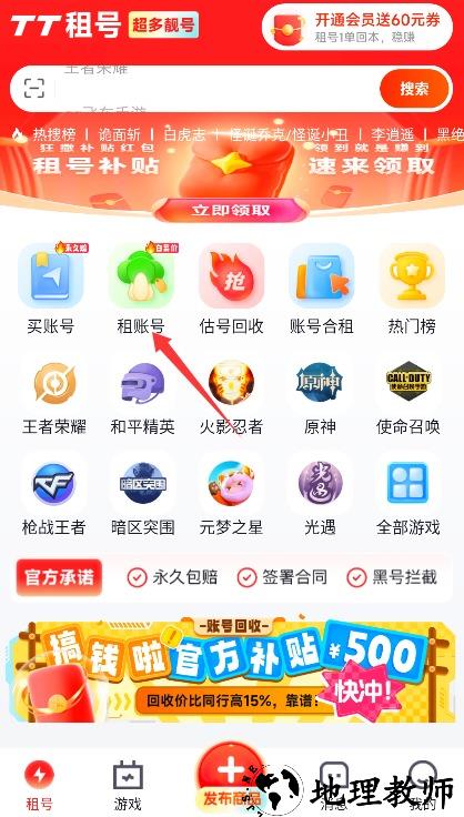 3、进入租赁专区后,浏览可租用游戏账号列表,选择心仪游戏点击立即租用完成交易。