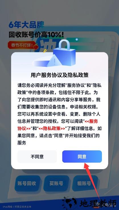 1、初次使用需完整阅读平台服务条款与隐私政策,确认后点击同意按钮进入应用。