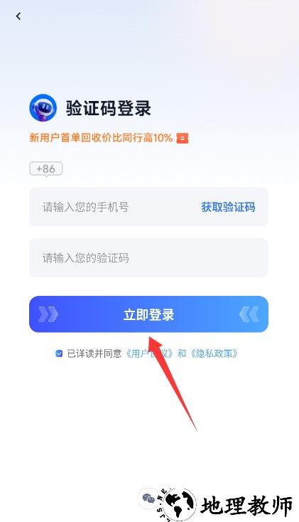 2、输入手机号获取验证短信,填写验证码并勾选协议后点击立即登录完成认证。