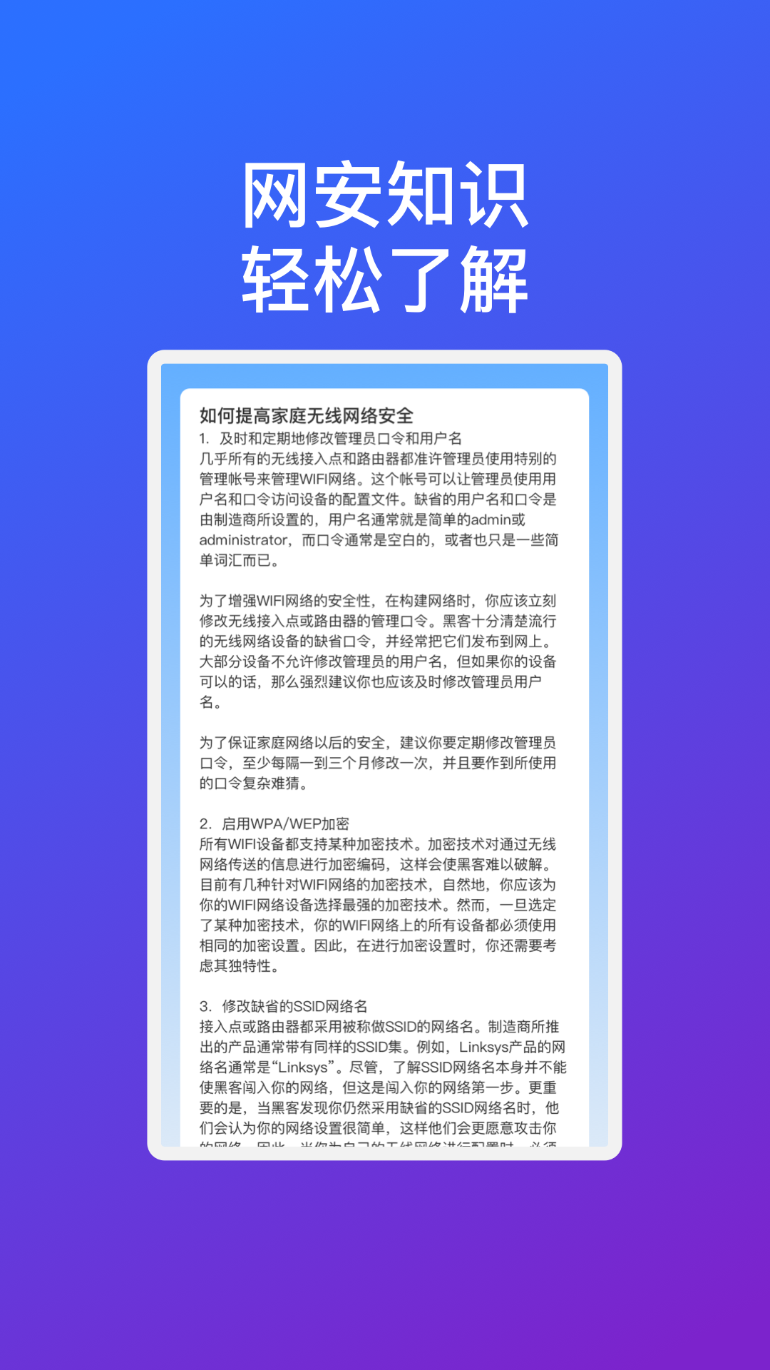1、应用采用高效连接算法,快速连接wifi,无需等待的应用;