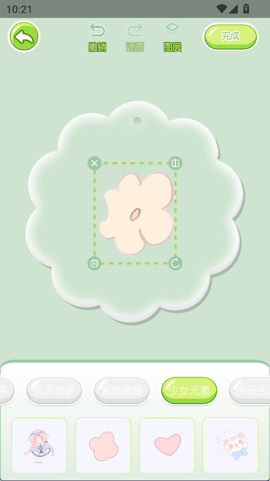 2、选择一个咕卡形状后,可以添加各种贴纸