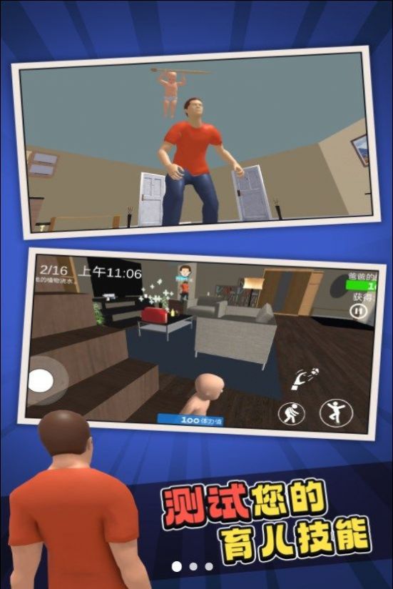 这款游戏的玩法很自由,大家也能在宝宝和爸爸之间进行选择,每个角色都会有不同的任务,只有在规定的时间内完成才能获得胜利,玩起来非常有意思。