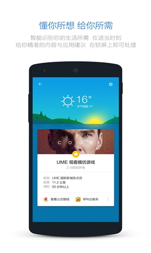 生活所需,在适当的时刻展示重要信息,给你较有效的内容与应用建议,在锁屏上即可处理;。