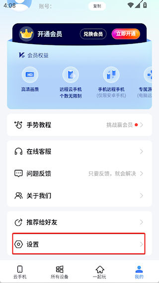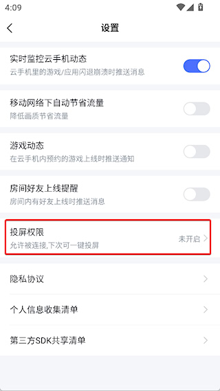2、点击投屏权限选项