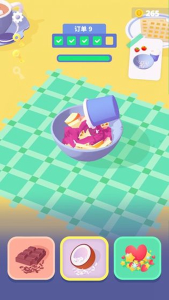 2、关卡不断推进,会逐步解锁更多造型、样式各异的铲子,开放更多种类的炒酸奶原料与水果配料。