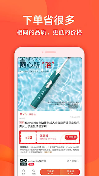 1、 性价比高:先领券后购物,享受超低折扣价格,帮助用户大幅节省开支,是追求性价比的购物者不二之选。