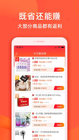 2、 返利赚钱:购物后还能获得高额返利,返利可抵现或提现,让购物不仅省钱,还能赚钱,享受双重收益。