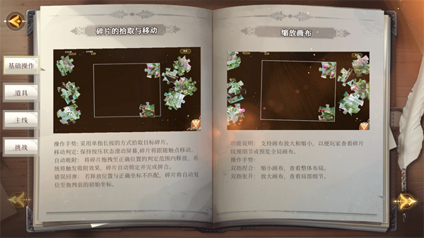 画布缩放:双指捏合缩小画布,便于观察整体布局;双指张开放大画布,可精准查看碎片纹理细节,提升拼合效率。