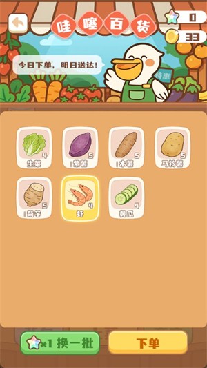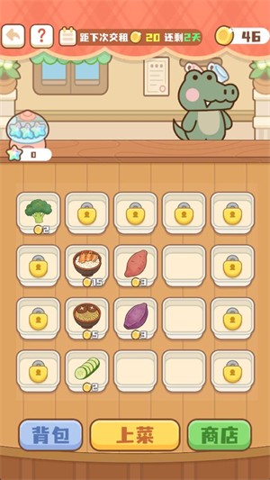3、点击商店可以消耗金币购买新的食材,商店里的货物只有全部购买完毕后才会刷新。