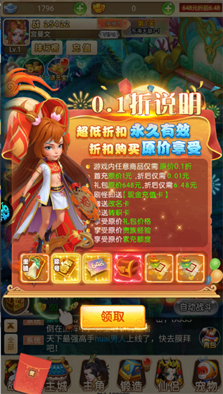 从创角第一天到最后一次登录,所有充值统统只按标价的零点一折算。别人花一百块买到的道具,你掏一毛钱就能拿走。今天买、明天买、明年买,折扣纹丝不动。钱包不缩水,战力照样涨。